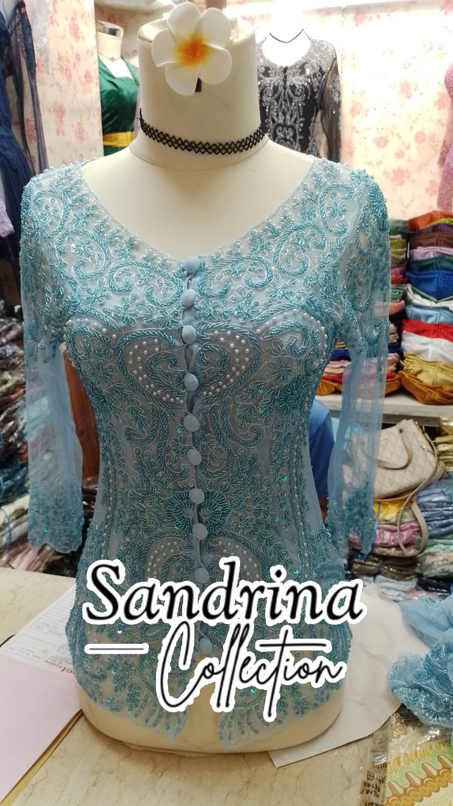 Kebaya Tile Bordir Biru Mutiara – Sandrina Collection